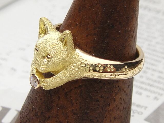 猫リングface (K18YG/ダイヤモンド)